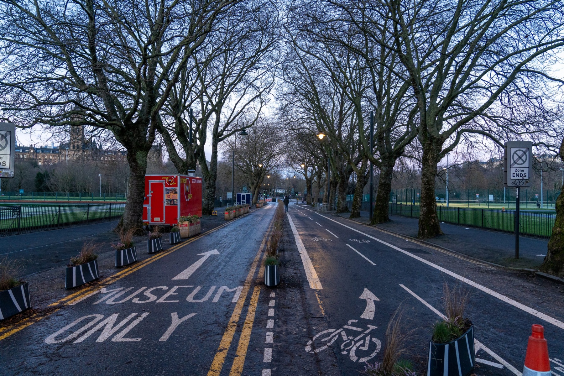The University dovetails into Kelvingrove park, which is an enormous spread of recreational Zen. It has an amphitheater, a killer skatepark, hidden trails, historical monuments, museums, bridges, you name it. It apparently is also a repository for used Xmas trees. In certain parts you would see hundreds of stacked trees forming long rows bordering various pathways through the park. I thought it was great! The smell of fresh green pine filled the cold, tree-preserving air.